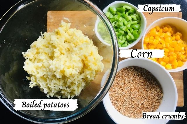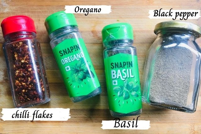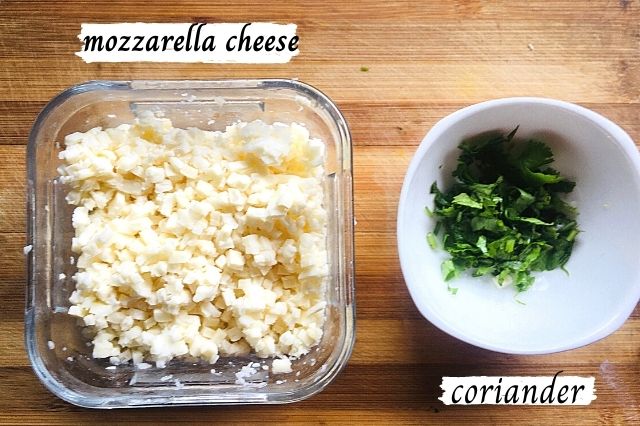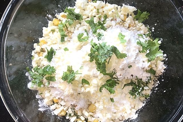 Add chopped capsicum,boiled corn ,oregano ,chilli flakes,basil,salt ,corn flour,cheese,coriander and mix them well .