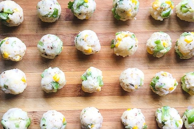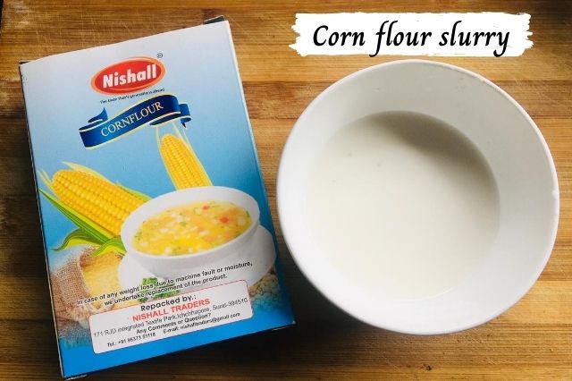 Make small balls. For Slurry, take 2 tablespoon corn flour and water.
