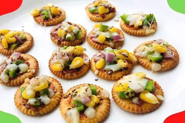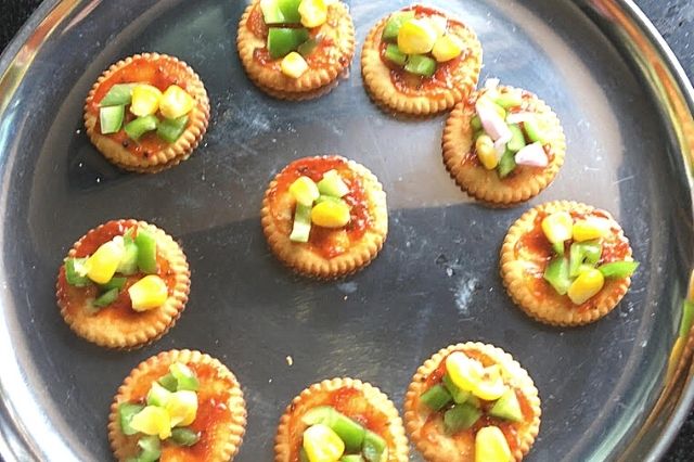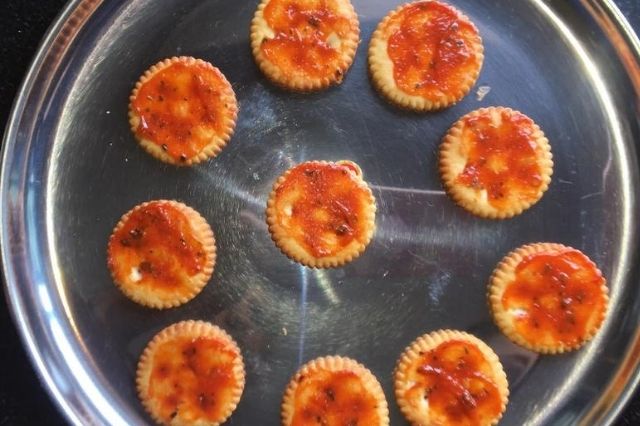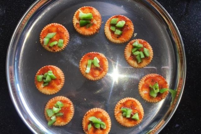 1. Place biscuits on the plate.Apply pizza sauce with the butter knife.